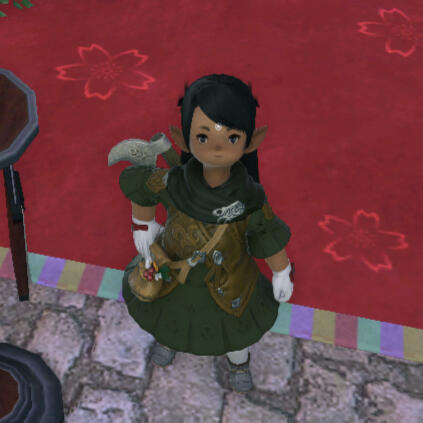 A mysterious individual trained in the Sharlayan art of divinity who claims to hail from Thavnair. She knows enough about alchemy for this to be a feasible truth, but seems a little too mysterious for it to be an easy answer.Intrigued by geomancy but unable (or unwilling) to return to Othard to find those who might teach it, she has set out to learn Eorzean white magic instead.