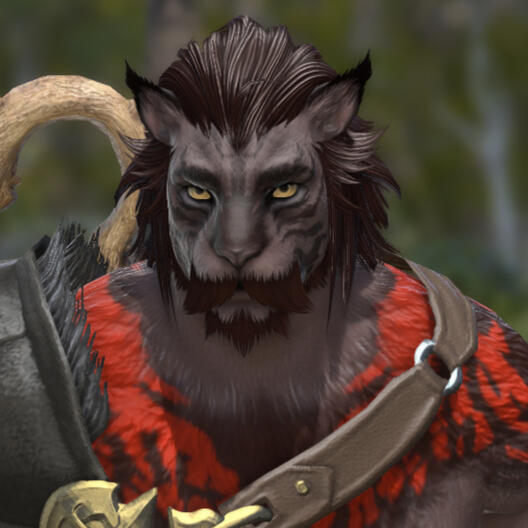 A Hrothgar who keeps his past personal, and treats Osk with the loyalty one might expect of a Helion would give his queen. Came to Ul'dah to fight on the Bloodsands, but had a change of heart when he saw opportunity in Osk's abilities. It's obvious he's looking for something, but what it is, he won't say.